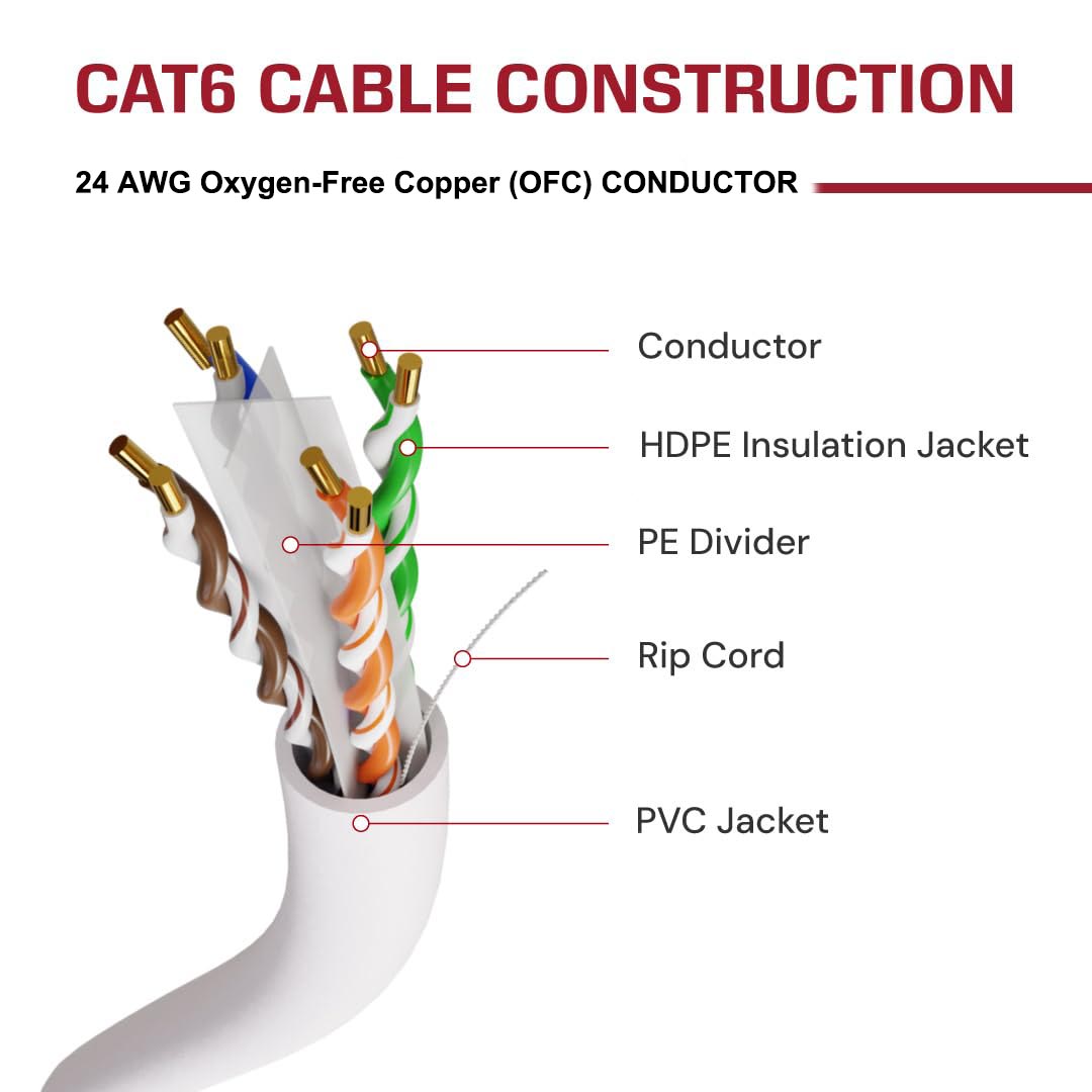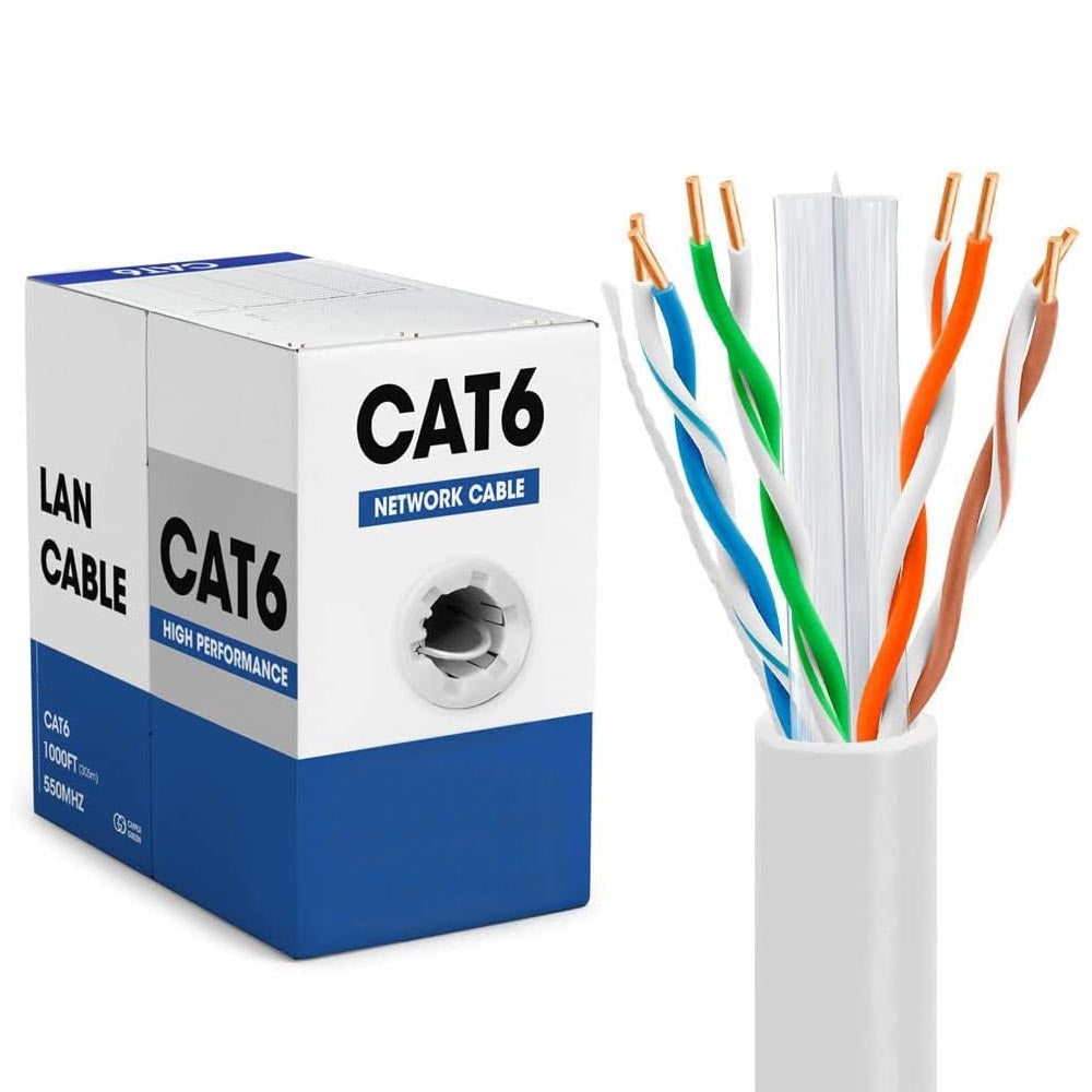 CAT6 Ethernet Cable 24AWG Solid Oxygen-Free Copper (OFC) , UTP 250MHz High-Speed 10-Gigabit Internet Cable 1000 FT/ Box
