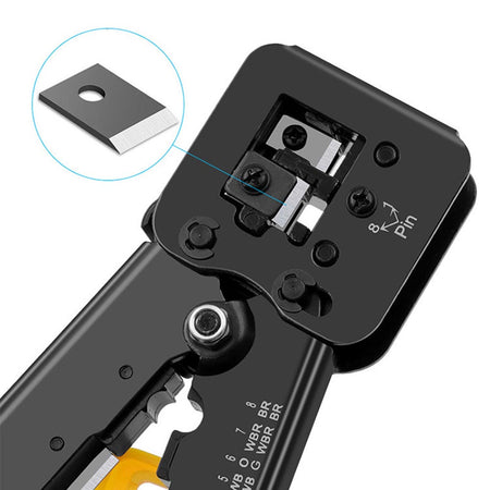 MATERIAL: RJ45 Wire Crimping Tool is made of professional-grade heavy-duty steel Black oxide finish resists rust and corrosion.The sharp blade of carbon steel can complete the cutting at one time, and there are 5 extra blades can be replaced, the non-slip handle is made of ABS material, it is more comfortable and safe to use.